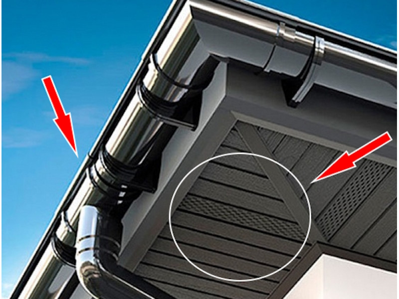 Перфорированные софиты устанавливаются по нижней линии карниза